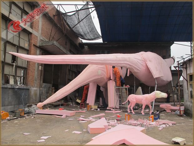 備注: 我們所制作的仿真恐龍展品和骨架模型展品被古生物專家所鑒定為“優(yōu)秀科研作品”被譽為”侏羅紀“的在現(xiàn)者。我們將秉承客戶至上的理念,為客戶設計和制造恐龍展品,并根據(jù)客戶的要求提供3年以上質量保證,并長期為客戶提供培訓安裝維修人員和配件等售后服務,為顧客解除了恐龍展品長期使用展覽的后顧之憂 仿真恐龍制作現(xiàn)場-馬門溪龍