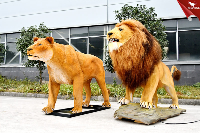 仿真獅子模型,一只公獅一只母獅,造型逼真,惟妙惟肖,仿真還原度高,能動會叫,主要用于景區(qū)、游樂場、動物園等場所!