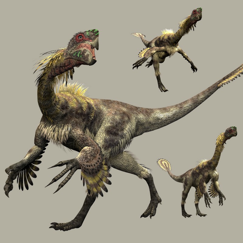 這只世界上所發(fā)現(xiàn)的第一只長有絨狀細(xì)毛的恐龍,被命名為原始中華龍鳥,是一種介于恐龍與鳥類之間的過渡型生物,可能代表了鳥類起源和演化的祖先類型。它擁有一個大頭顱,樣子與雞相近,前肢短小,后肢長而粗壯;嘴里的銳利牙齒,說明它是一只活躍的掠食者。除了長毛以外,它那條由多達(dá)58節(jié)尾椎骨所組成的特長尾巴,也是一個重要的特征。它生活在中國的白堊紀(jì)早期,以蜥蜴為生。