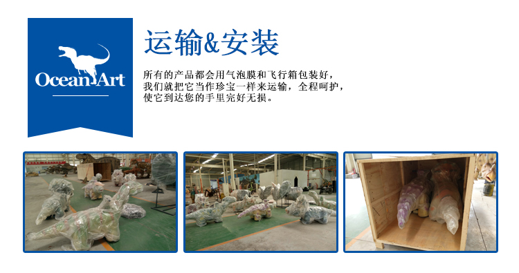 備注: 我們所制作的仿真恐龍展品和骨架模型展品被古生物專家所鑒定為“優(yōu)秀科研作品”被譽為”侏羅紀“的在現(xiàn)者。我們將秉承客戶至上的理念,為客戶設計和制造恐龍展品,并根據(jù)客戶的要求提供3年以上質(zhì)量保證,并長期為客戶提供培訓安裝維修人員和配件等售后服務,為顧客解除了恐龍展品長期使用展覽的后顧之憂。